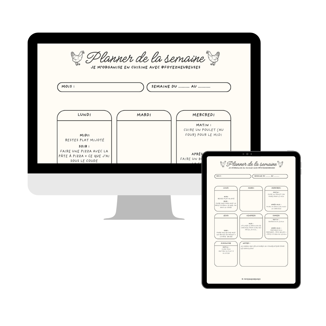 Télécharge ton planner pour t'organiser en cuisine avec mes petites astuces anti charge mentale !